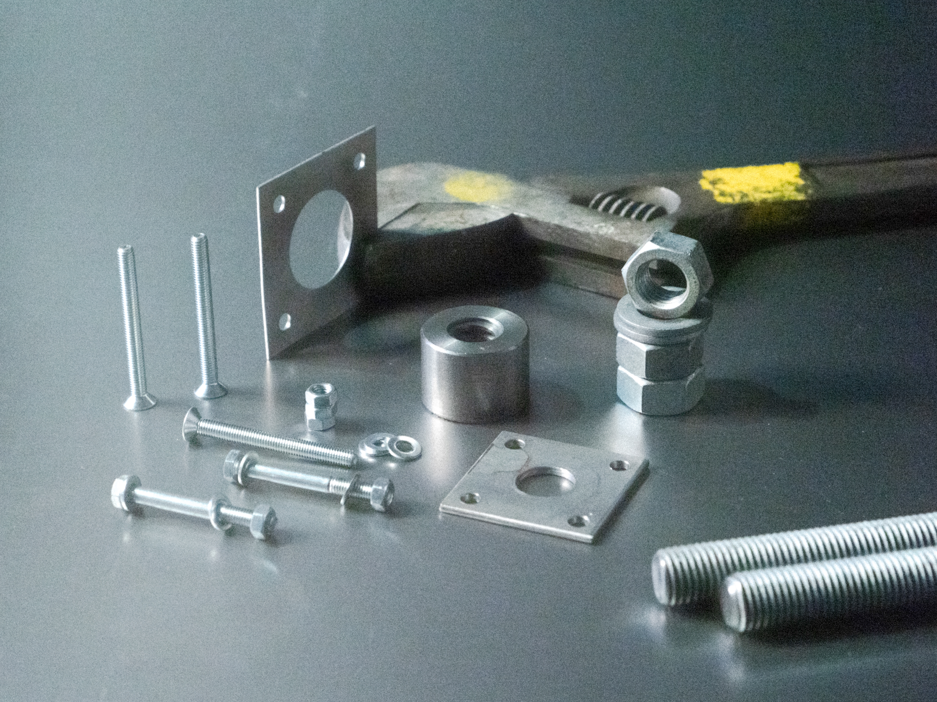 On the candle holders I'm utilizing the central 'custom' parts from both the shader and the stool. In the shader, the plate with five holes is duplicated to form the entire assembly. In the stool, a similar part is utilized to attach the technical height adjustment screw to both the frameplate and the sitting plate.