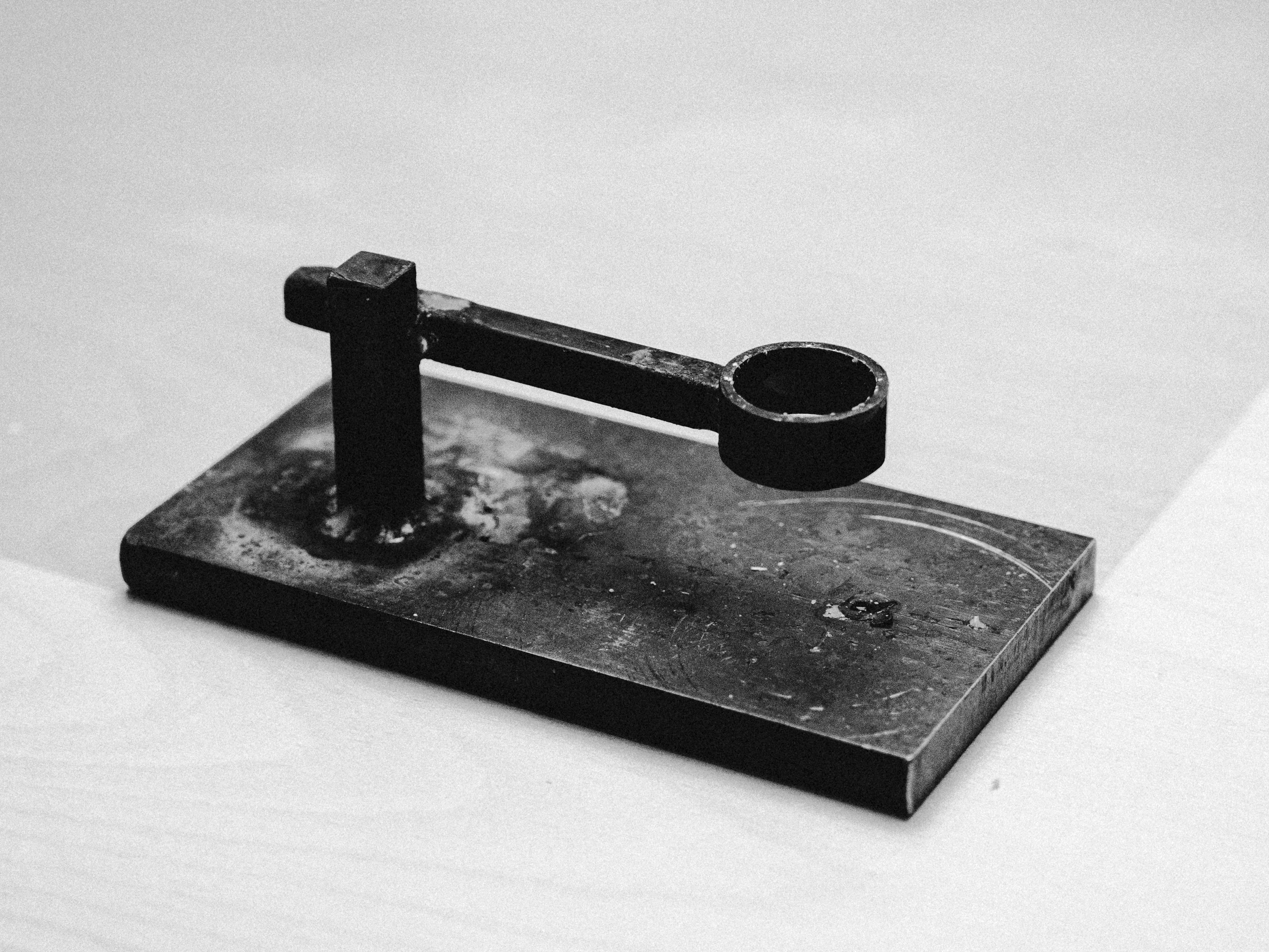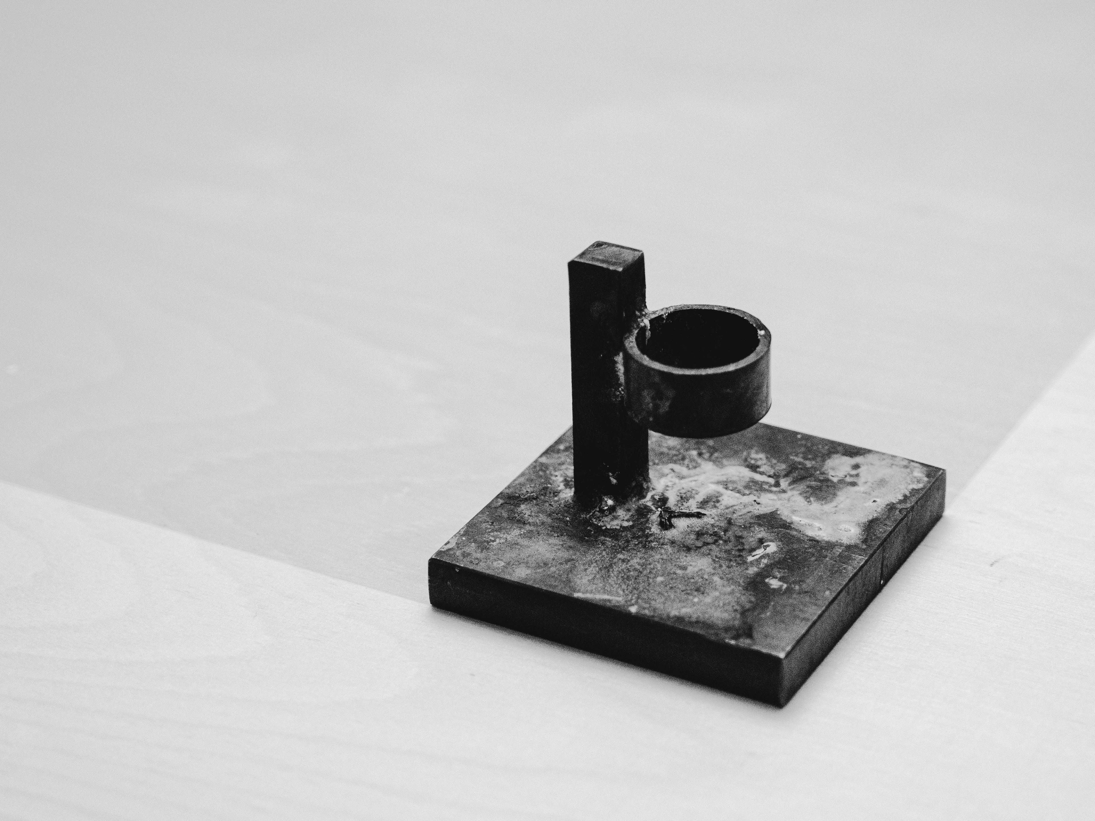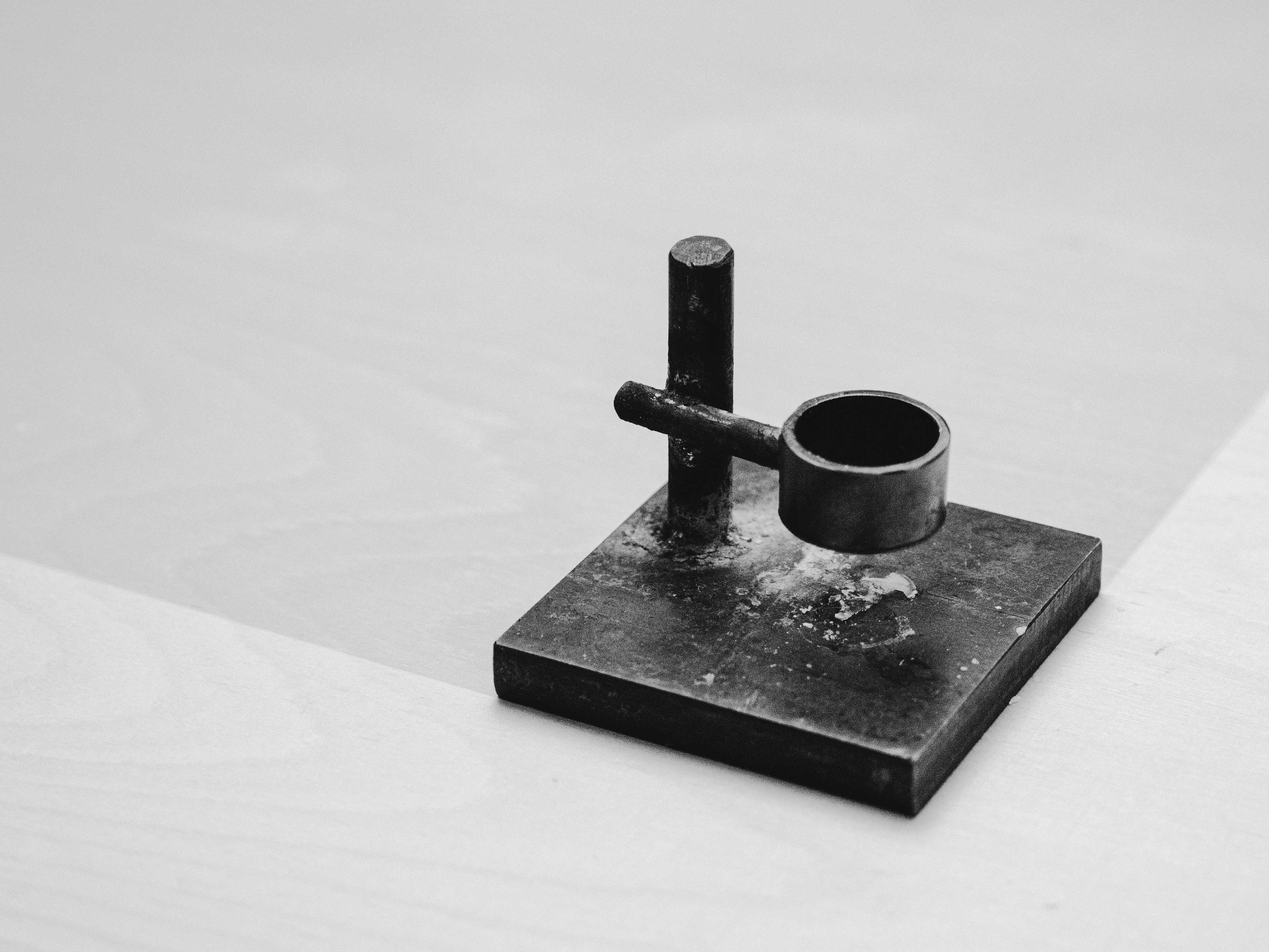 The starting point was to practice soldering with brass, to play with distinctive characteristics of metal and to work intuitively in combining the parts. The objects are both whimsically technical and thoughtfully random.